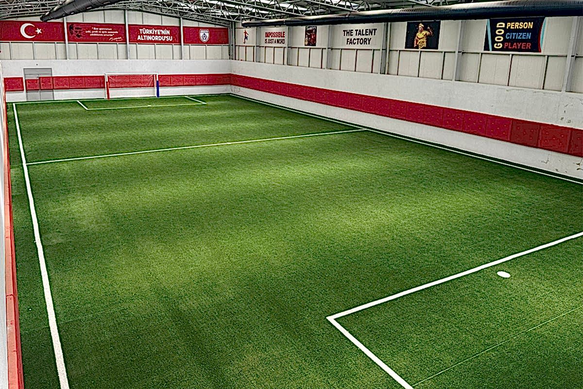 980 metrekare ağır çelik konstrüksiyon yapı. Sentetik Çim. Net 20x30 m